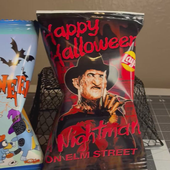 Freddy Halloween Digital Chip Bag Template | Editable Halloween Party Favor | Horror Movie Theme
